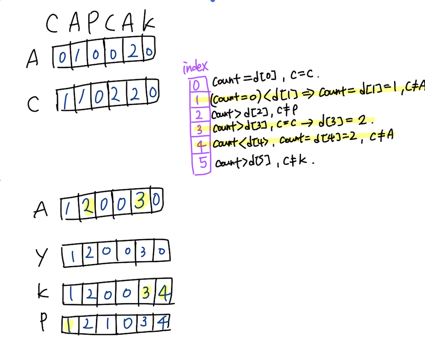 dp 테이블에 일치하는 횟수를 더해준다. count 에는 이전 위치의 최대 값을 저장한다.