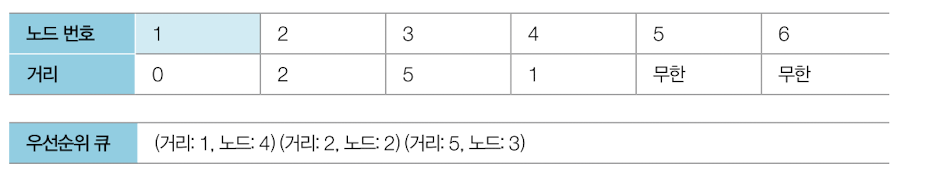 단계마다 최단 거리를 가지는 노드를 하나씩 반복적으로 선택한다. 그리고 해당 노드를 거쳐 가는 경로를 확인하며, 최단 거리 테이블을 갱신하는 방식으로 동작한다.