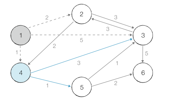 4번 노드에서 갈 수 있는 3,5 노드의 거리 업데이트