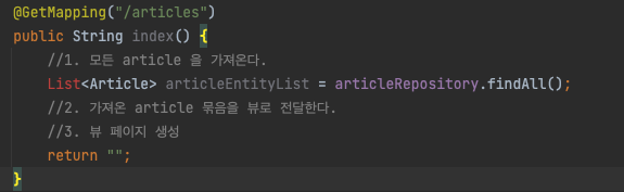 article controller 에 index 메소드 작성