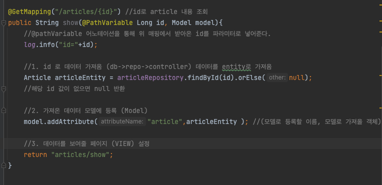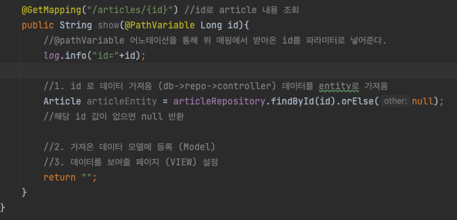 Article controller 에 조회 메소드 추가