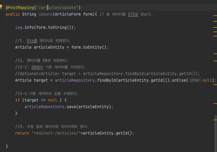 3. 수정 폼 컨트롤러